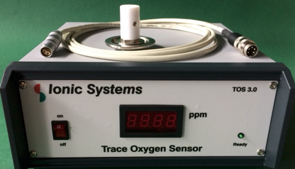 Der Spuren-Sauerstoff-Sensor TOS 3.0 ist ein miniaturisierter amperometrischer Grenzstrom-Sensor für die Messung niedriger Sauerstoff-Partialdrucke. Er basiert auf der Anwendung keramischer Festelektrolyte mit optimierten elektrochemischen und thermomechanischen Eigenschaften. Er benötigt keine Referenzelektrode, die im Laufe der Zeit verbraucht werden könnte. Alle Teile sind fest, und die Messung führt nicht (wie bei Verwendung konventioneller flüssiger Elektrolyte und Rückführung des Gases) zu einer Erhöhung des Wasserdampfdruckes. Der Sensor ist für Sauerstoff selektiv und verlangt keinerlei Wartung.